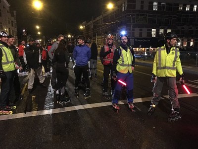 Een goede night skate is een joy for ever. De helden van de night skate hebben vrijdag 1 februari 2019 weer een leuke Friday Night Skate gepresenteerd. Type van de beloofde route was easy peasy. Een makkelijke tocht over perfect asfalt. De route leader kondigde bij het begin meteen aan dat er allemaal bekende gezichten waren. Dus dat er werd doorgereden. De zweep zou er niet over gaan zoals vorige week. Toen was ook een easy peasy route aangekondigd. Het was fijn rijden. Meteen werd het tempo ingezet. Makkelijk was het niet.